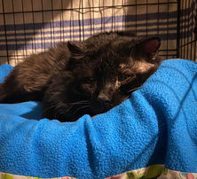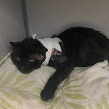In October of 2022 we received a report of a severely injured black kitty from a lady who had set up a feeding station for stray cats in her area. Our trapper went out and searched for him for a week but couldn't find him. Because of the severity of his injuries it was believed he must have curled up somewhere and died.