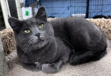 Bluebell is a Russian Blue–looking darling with soulful eyes, a peaceful presence, and THE softest coat of fur. She’s naturally shy and often watches the room quietly before deciding she’s ready to say hello. But once she feels secure, she leans into affection with delicate nudges and soft purrs that feel like little thank-yous.