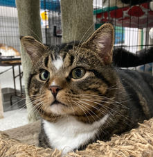 Hank is a handsome brown-faced tabby with a striking white diamond between his eyes - a little mark that makes him truly one of a kind. His gentle nature and soulful gaze tell a story of resilience and hope.