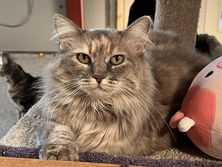 Because she was protecting her first and second litters when she came to us, it took some time to see Misa's true nature. She has made great strides since being at LCCR and will now hang out when volunteers are around. She is still hesitant and cautious around humans but has come a long way. She will need a family who are very patient and willing to let her come out of her shell at her own pace. That family will also need to have knowledge and experience with feral cats and how to socialize them.